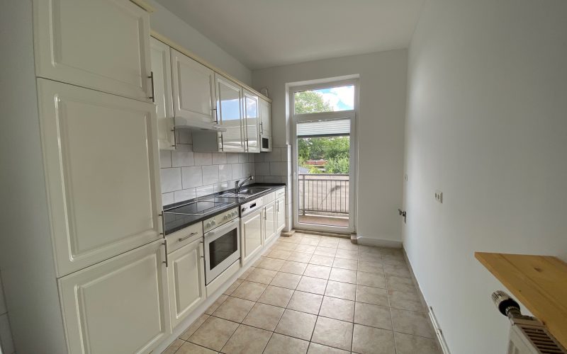 Die Küche bietet Zugang auf einen kleinen, nach Süden ausgerichteten Balkon.
